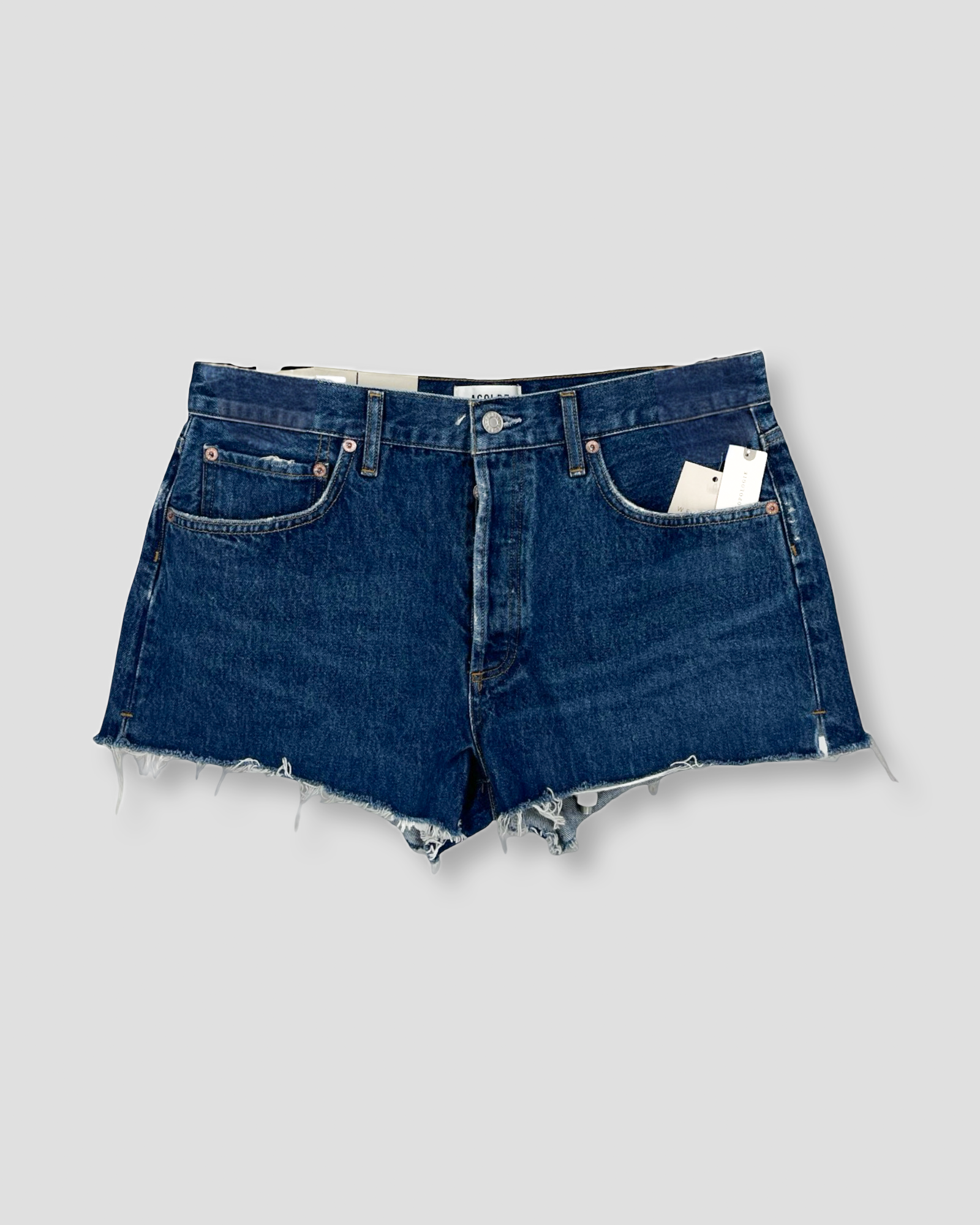 Details: The fan-favorite Parker Short features a flattering high-rise and a relaxed silhouette through the hips, designed to feel as though they were made just for you. Finished in a dark washed worn-in indigo, this pair channels the timeless character of true vintage denim. Crafted from rigid non stretch 100% regenerative cotton denim with a soft hand feel, they provide all-day comfort while maintaining their crisp, structured shape. Effortlessly stylish and perfect for warm days, the Parker Short pairs seamlessly with everything from easy tees to breezy blouses.