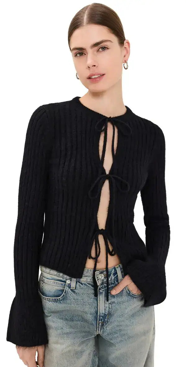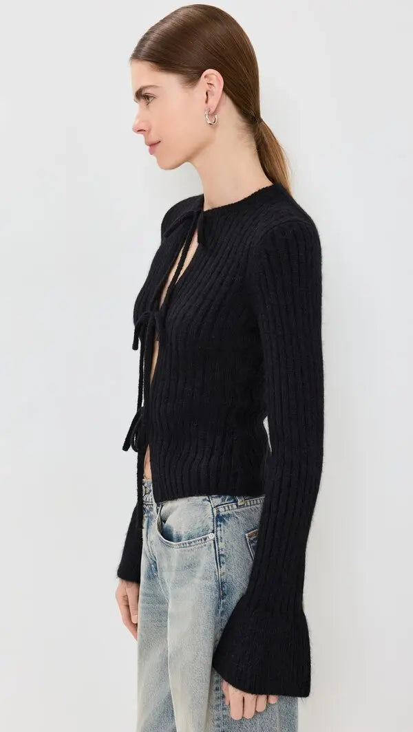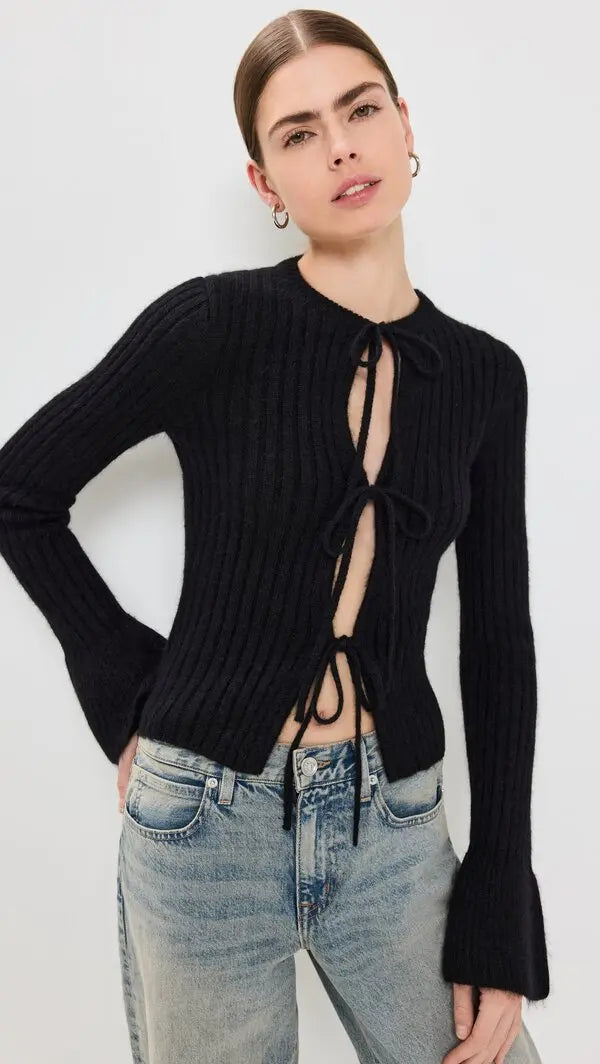 Details: Cozy time. Shop the Rebecca Cashmere Blend Tie Front Cardigan from Reformation, a cardigan with a tie front and flared sleeves.
