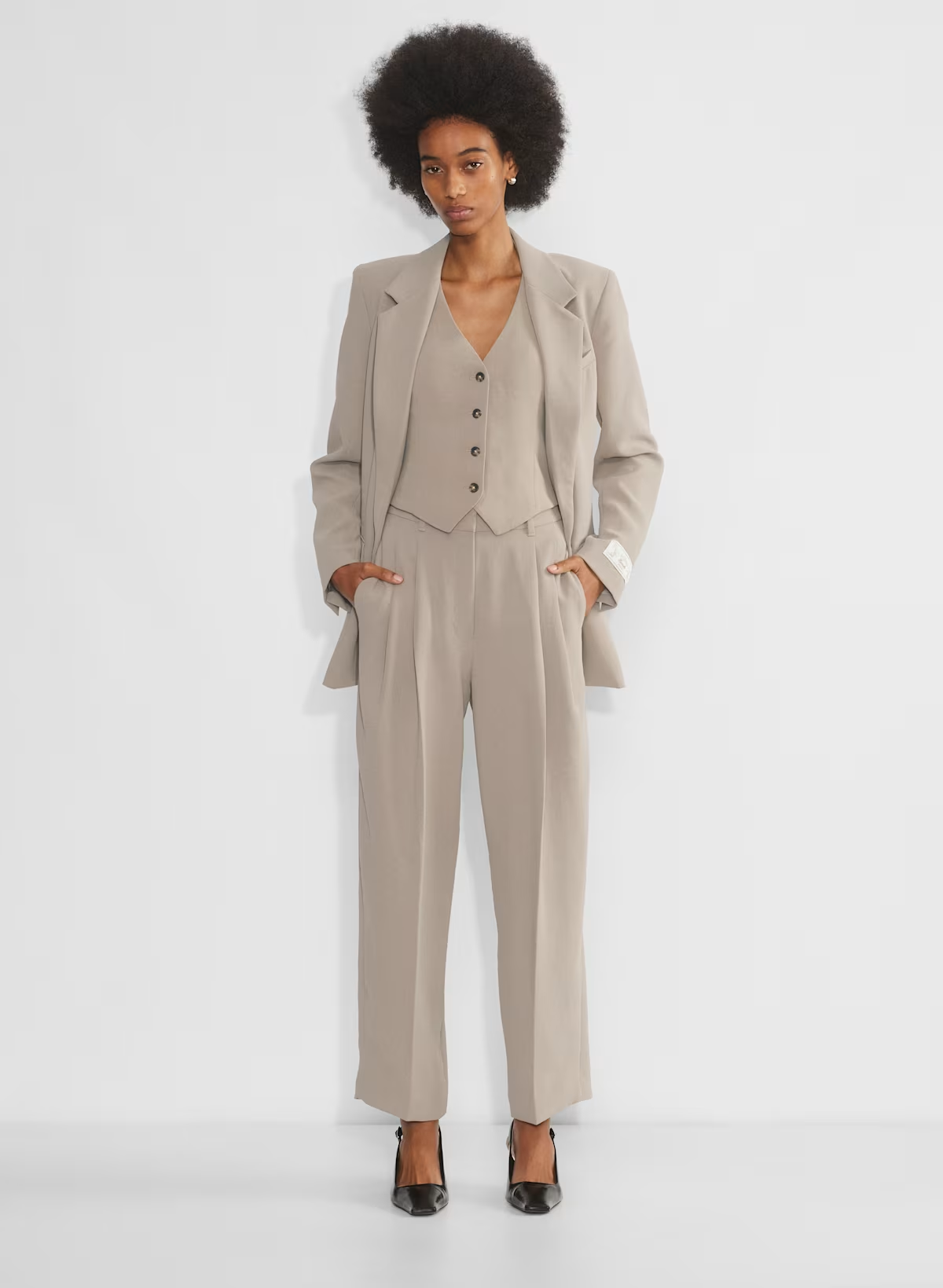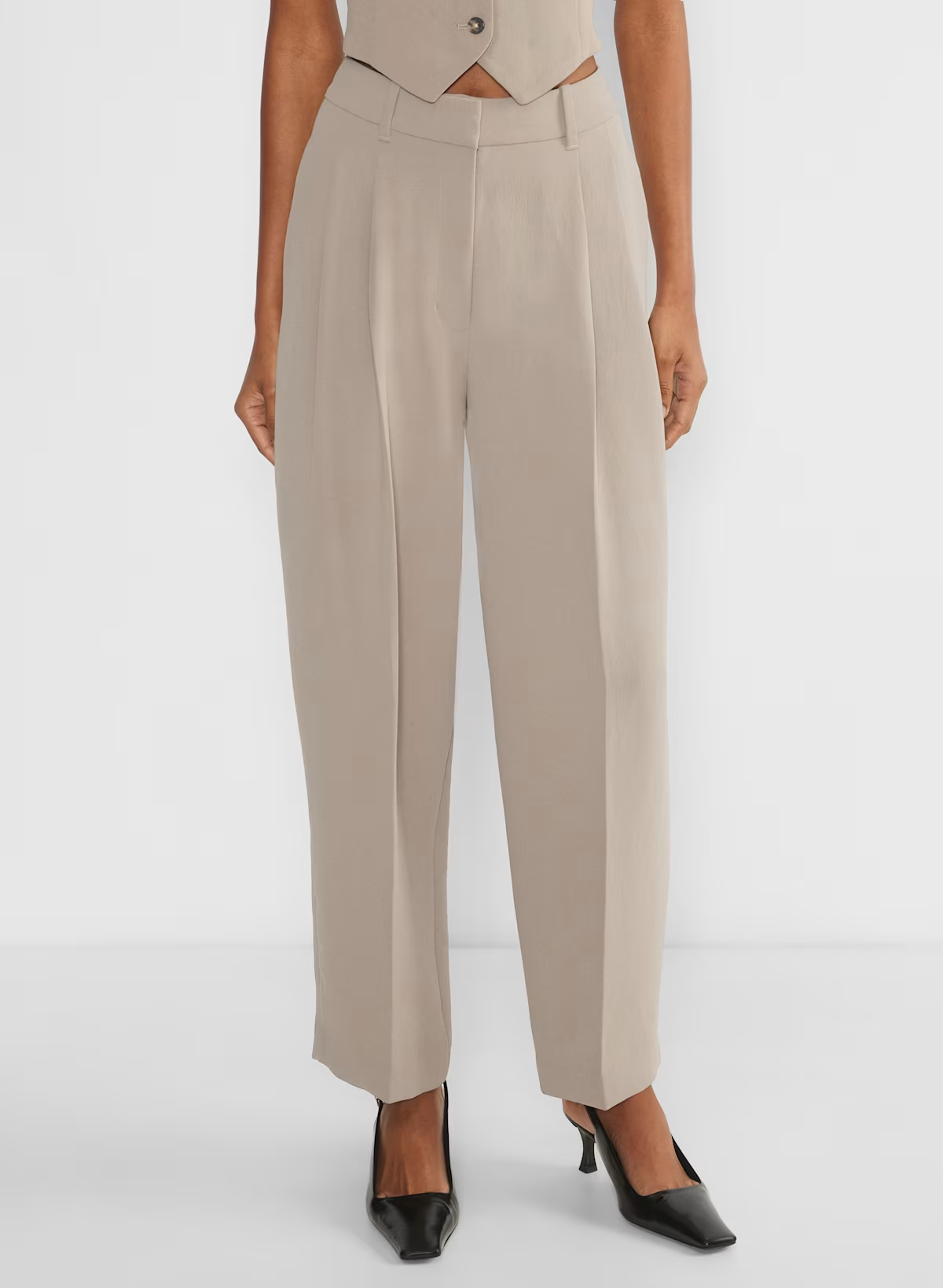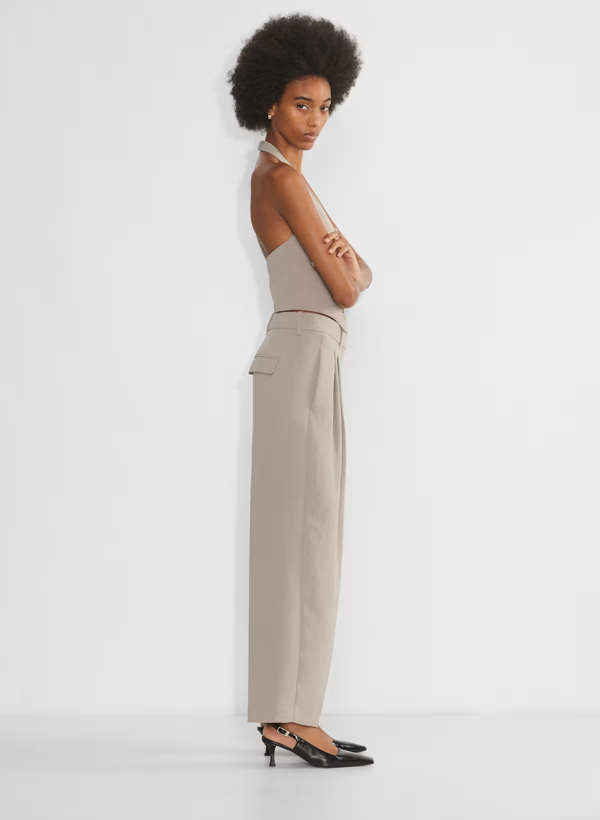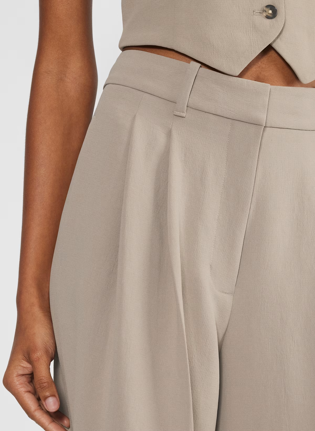 These are pleated pants with a wide leg and relaxed fit. They’re expertly tailored with Crepette— the one-of-a-kind Japanese crepe fabric beloved for its subtle texture, breezy drape and the fact that it basically never wrinkles.