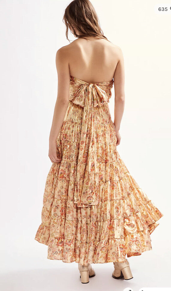 (L) Printed Something Magical Metallic Floral Tiered Maxi Dress