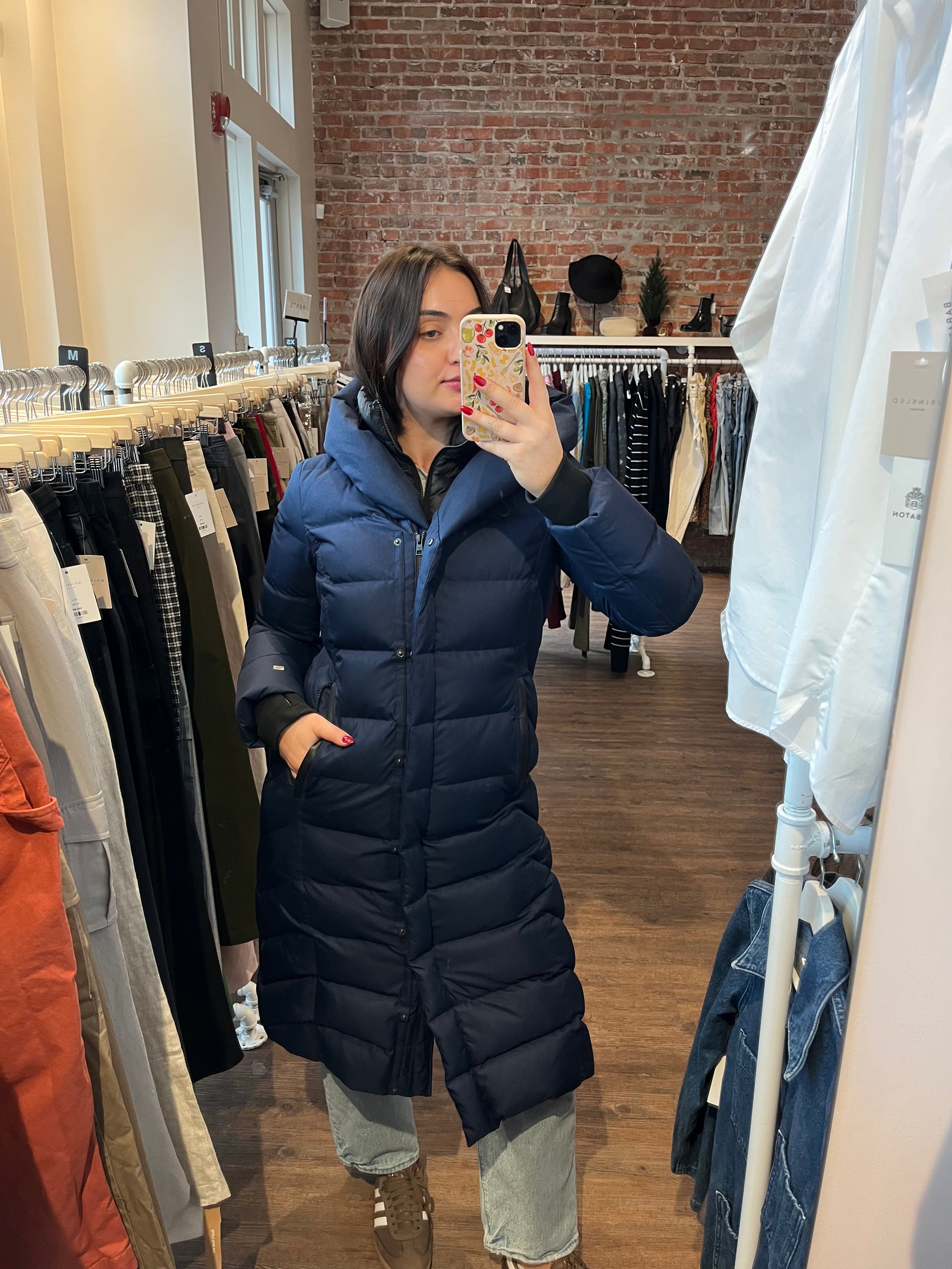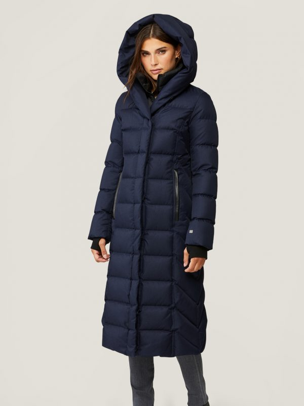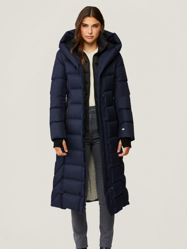 Details: TALYSE-C by SOIA & KYO is a statement-making maxi down coat crafted for extreme conditions. With side-body chevron quilting, a channel quilted bib, and a sleek calf-length silhouette, this coat is rated for -35 °C and designed to insulate without bulk. Soft fleece pockets and storm cuffs with thumbholes add extra protection and comfort.