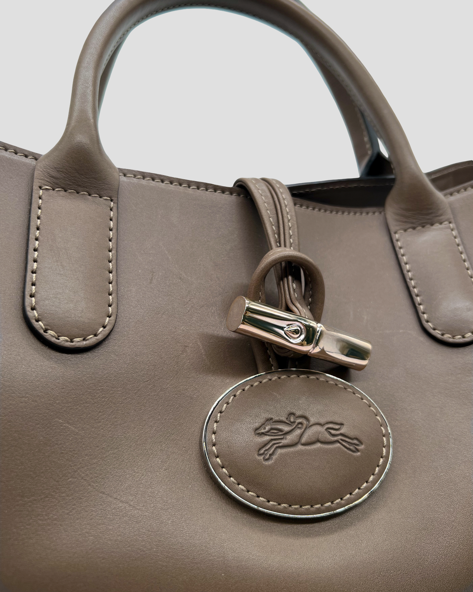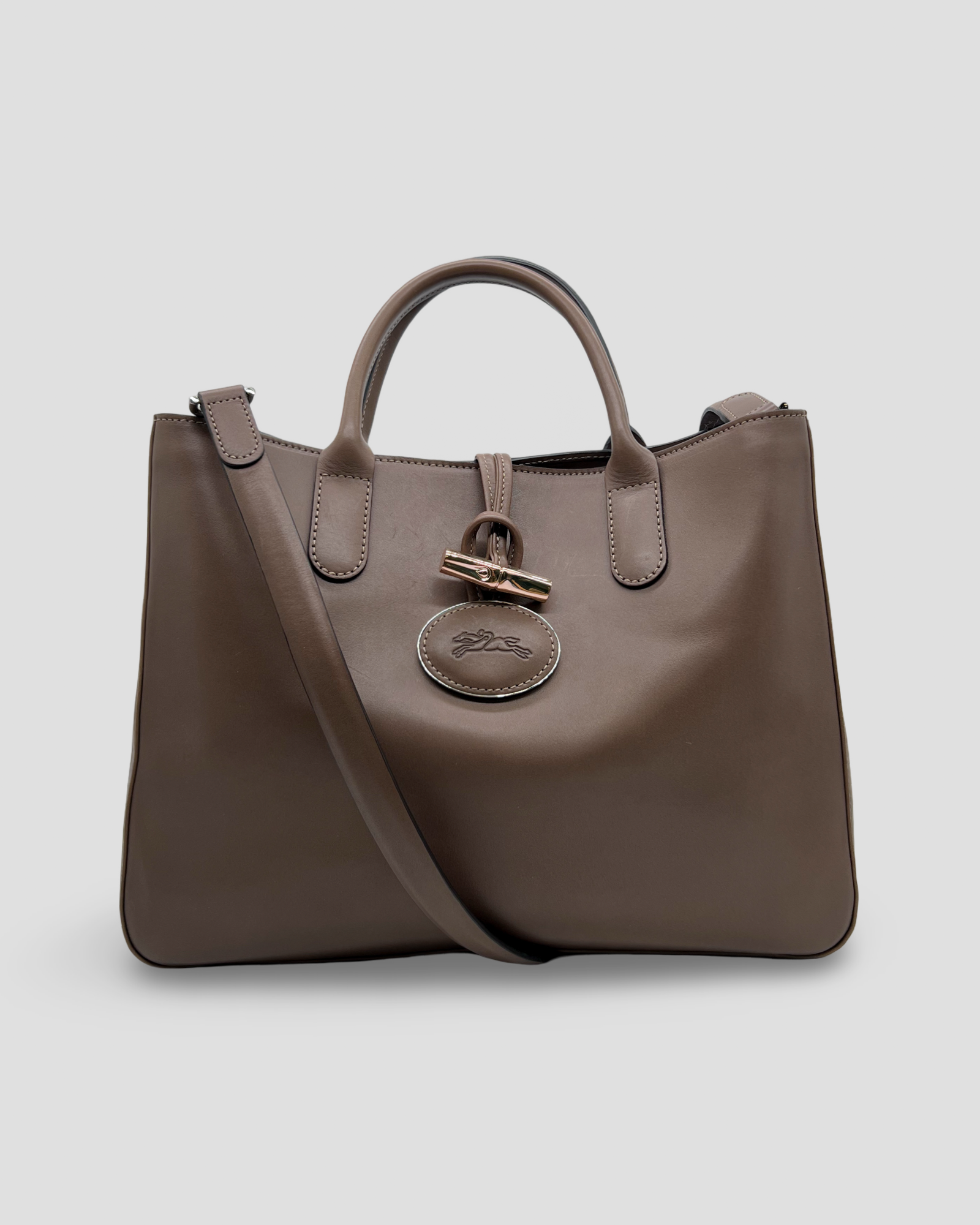Details: Rich leather construction and a polished toggle distinguish this structured handbag perfectly sized for your essentials.