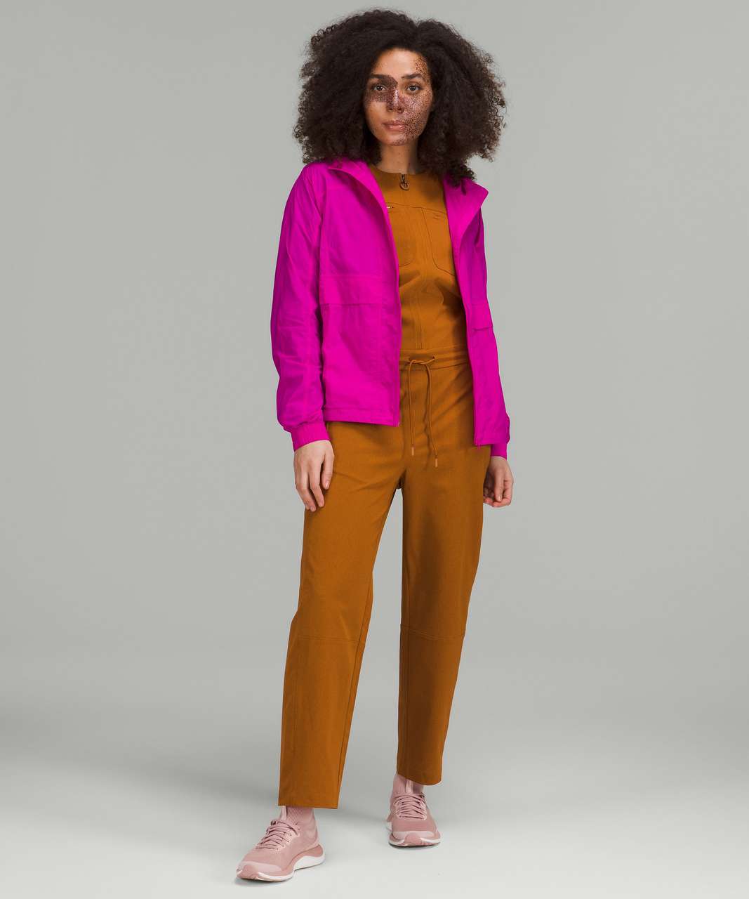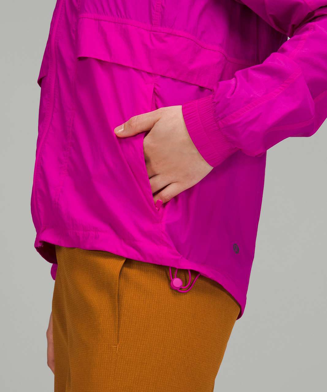 Details: Be ready for anything. This packable jacket repels light rain and packs down into a belt bag so you can stay hands free when the sun comes out.