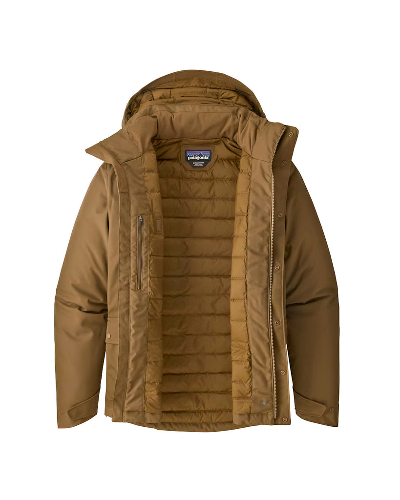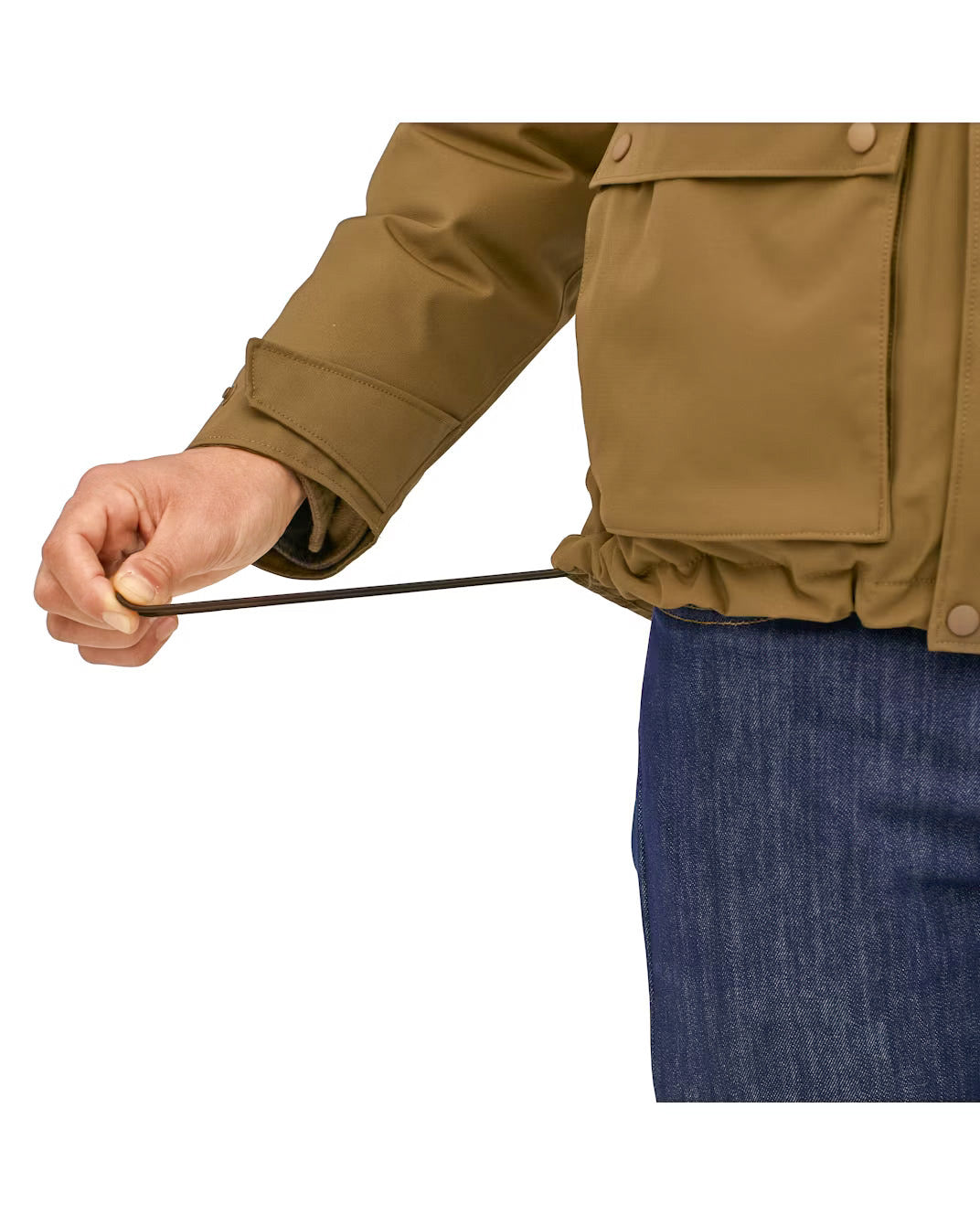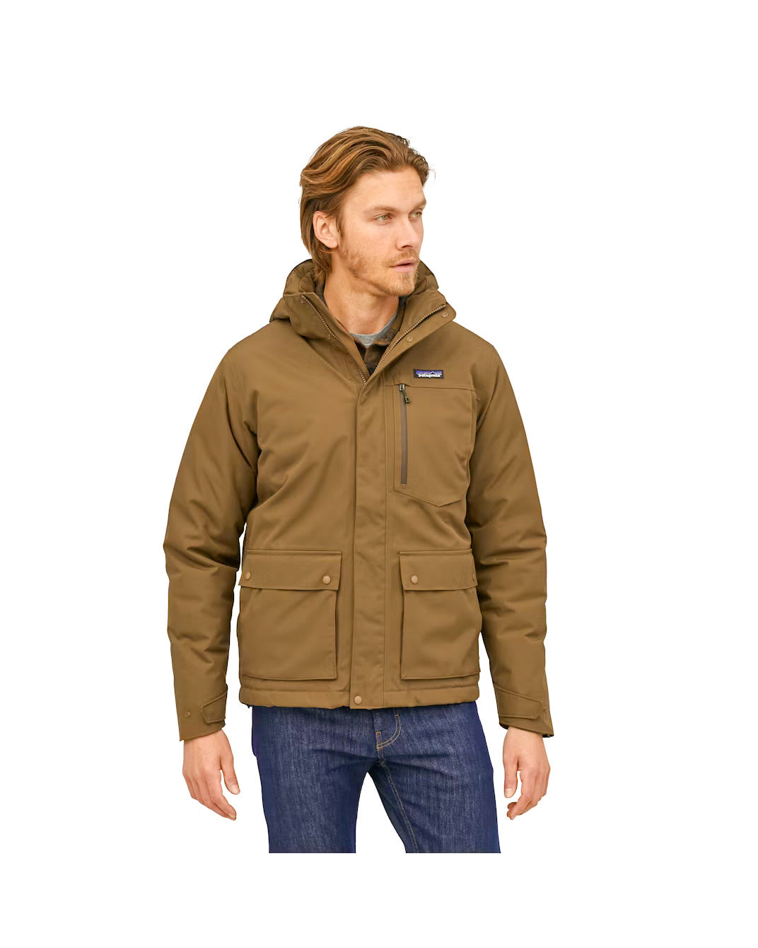 Details: The men’s TOPLEY Insulated lightweight jacket makes wet cold weather fun again, featuring element-repelling warmth. 700 fill power down makes up the insulation, with superior loft and heat-trapping from 100% recycled down. An H2No Performance Standard shell membrane is built to keep water out and breathe, made of 100% recycled poly. The 100% recycled taffeta lining is 50-denier and seals in the heat. A Durable Water Repellent finish on both shell and lining further the moisture protection. The hood is removable, adjustable and has a laminated visor for increased in-storm visibility. The external storm flap conceals a two-way front zip. Microfleece lines the collar for comfort. Two handwarmer pockets are lined with brushed jersey. The chest pocket has a waterproof zip and is headphone-compatible. A dual-adjust hem drawcord and drop tail hem help seal out the unwanted.