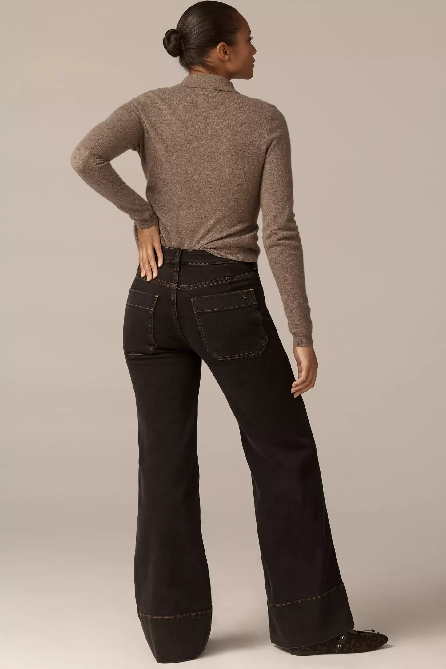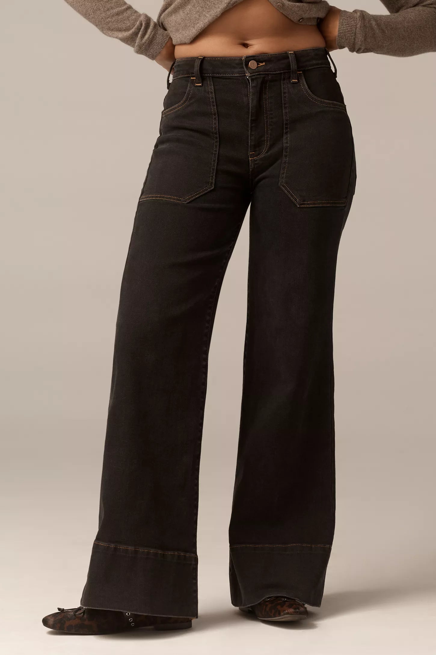- Flared wide leg