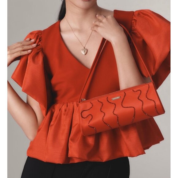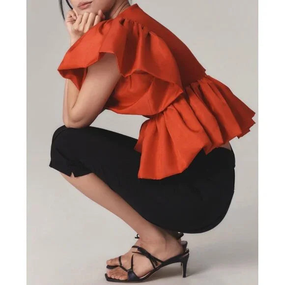 Details:Lightweight and flowy babydoll blouse with ruffled short sleeves and a flattering V-neckline. Versatile for casual or semi-formal styling'