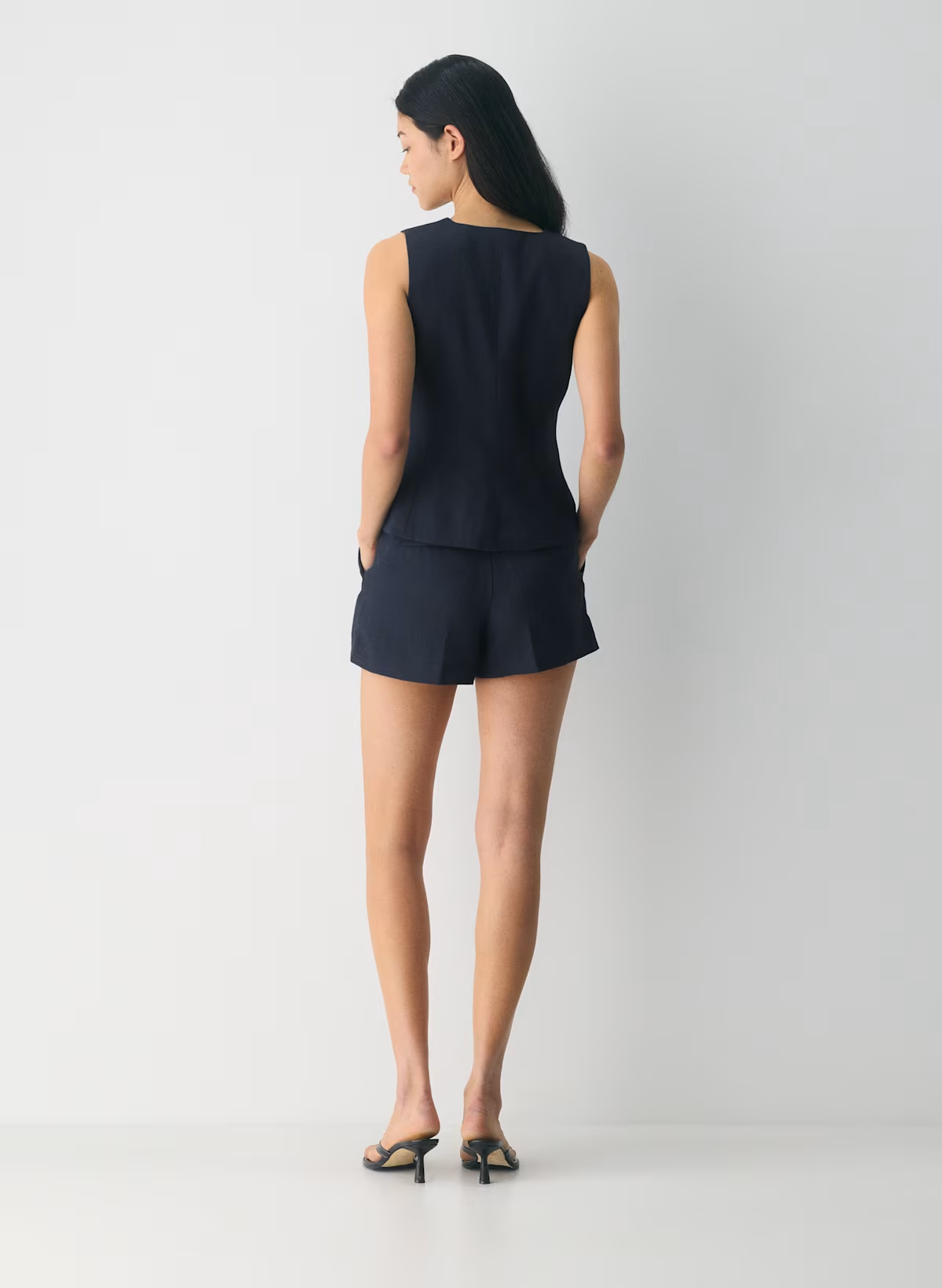 Details: This is a lined button-up vest with princess seams for shaping. It’s expertly tailored with Crepette™ — our one-of-a-kind Japanese crepe fabric beloved for its subtle texture, breezy drape and the fact that it basically never wrinkles.