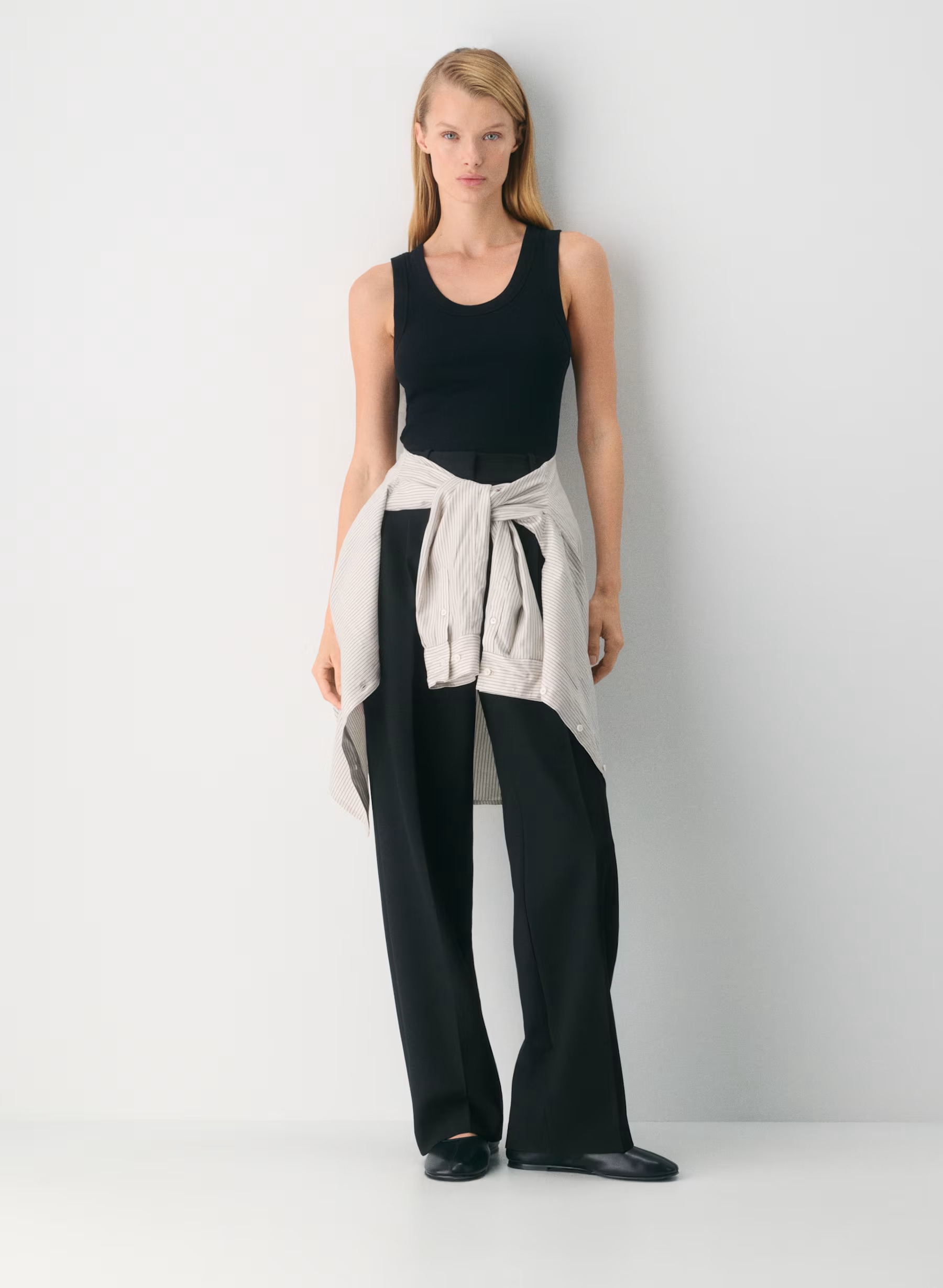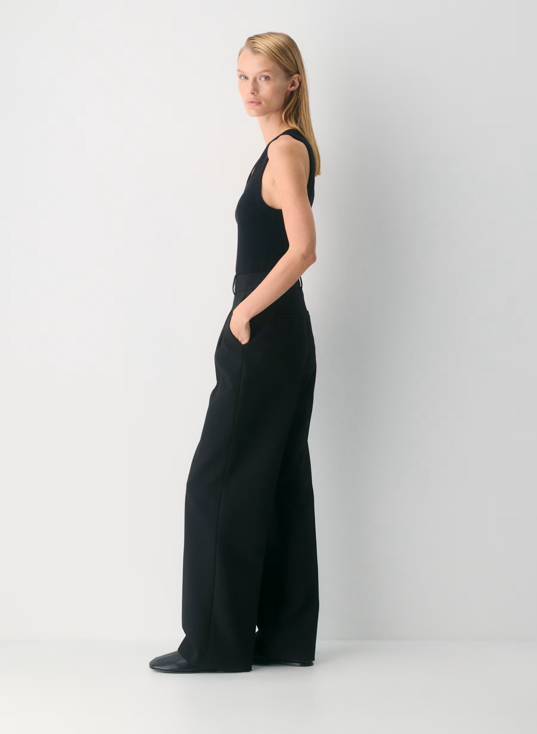 Details: The original goes-with-everything trouser, these are tailored-yet-relaxed high-rise pants with front knife pleats, an easy drape and a long, wide leg. They're made with (Re)ssential — softly structured stretch fabric that holds its form while you move easy.