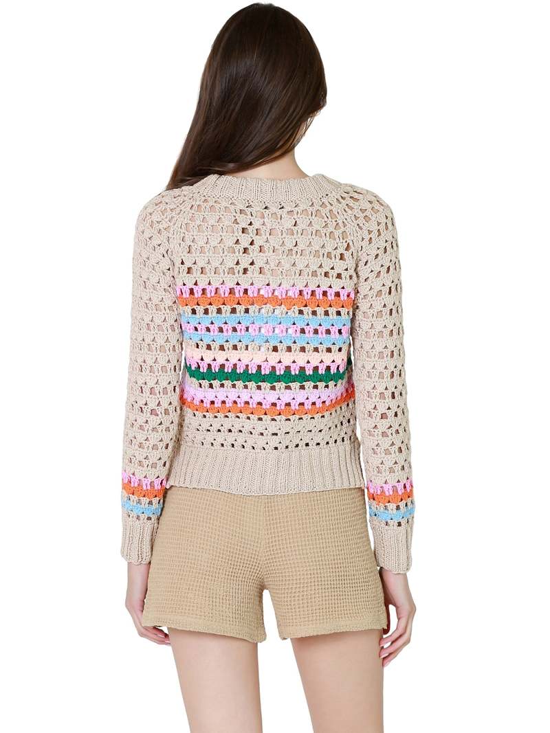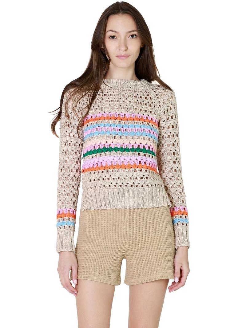 Details: Crochet is everywhere this Spring and this sweater is right on topic. Each SMYTHE x Augden sweater is handknit by indigenous Incan artisans. This collaboration preserves craft and empowers a community of women while creating sustainable design.