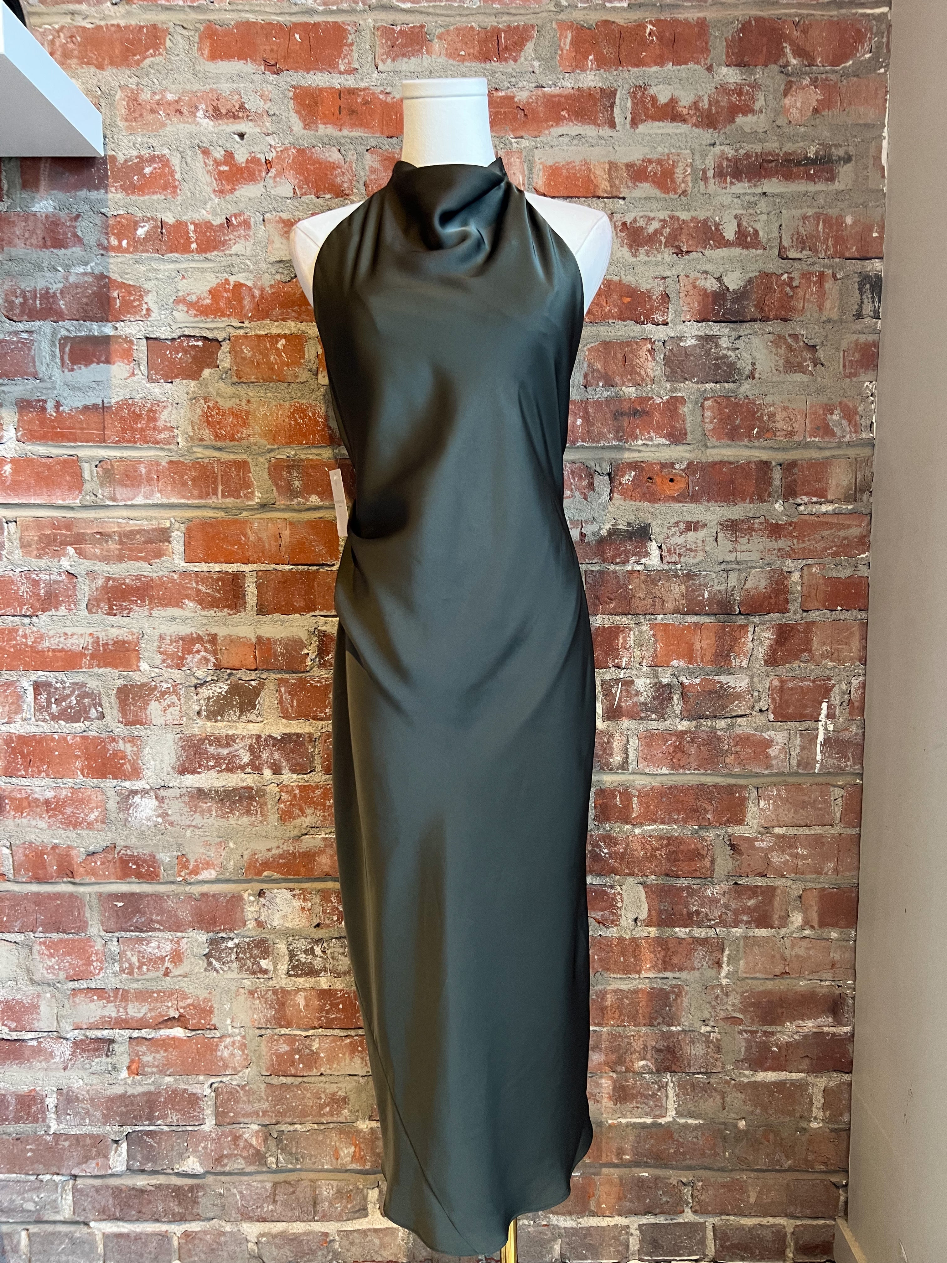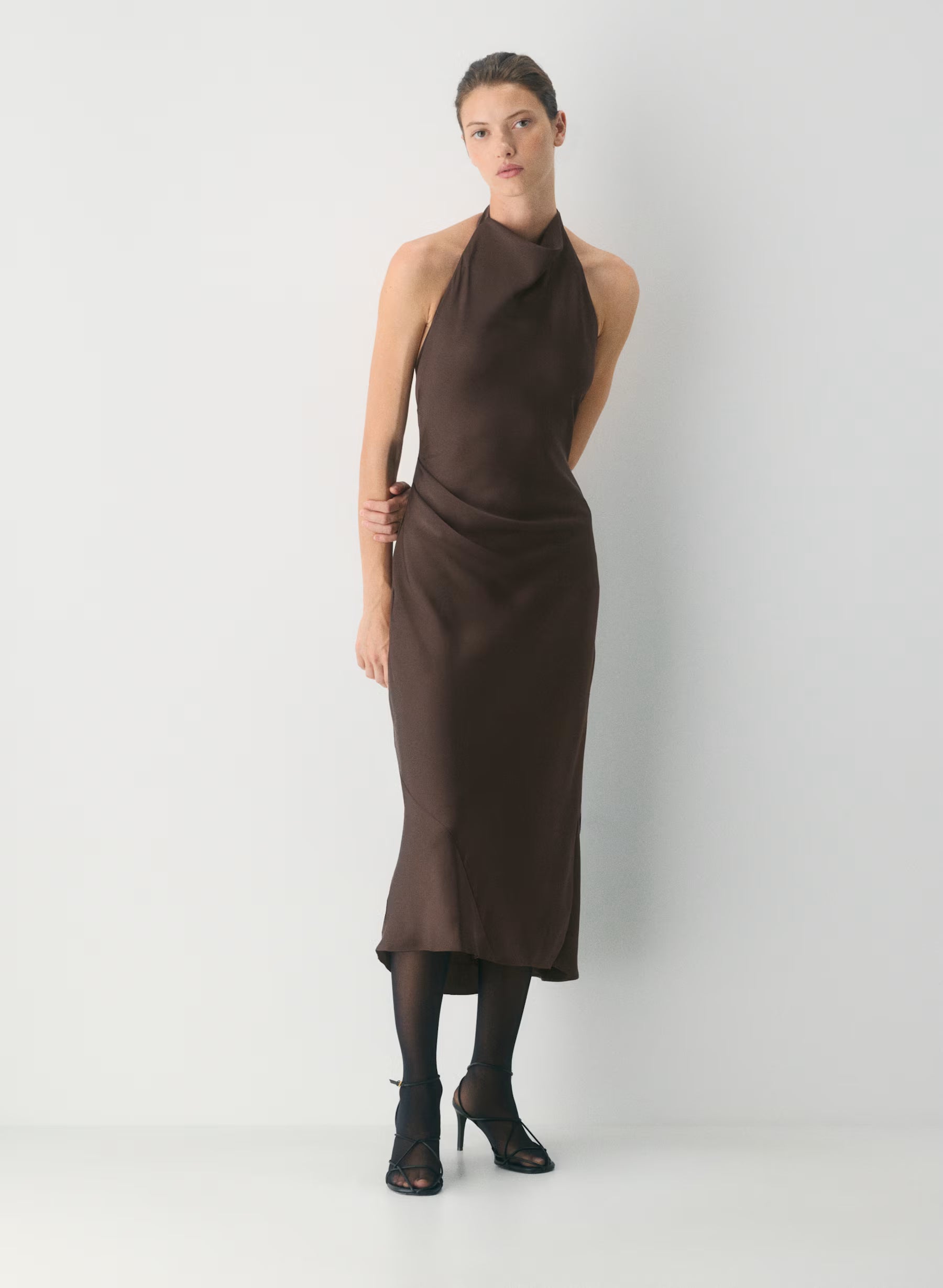 Details: This is a halterneck dress with a slim fit. It's cut from drapey Japanese double-faced satin with a soft sheen and luxurious next-to-skin feel.