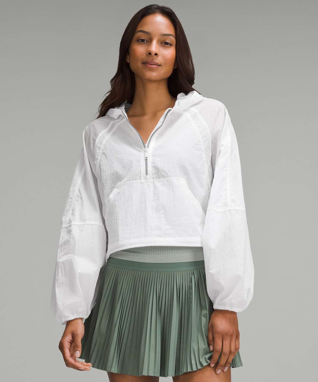 Details: A little rain won't dampen your post-workout high. Step out of the studio and into the weather in this feather-light and water-repellent anorak. DWR-treated fabric is water-repellent.