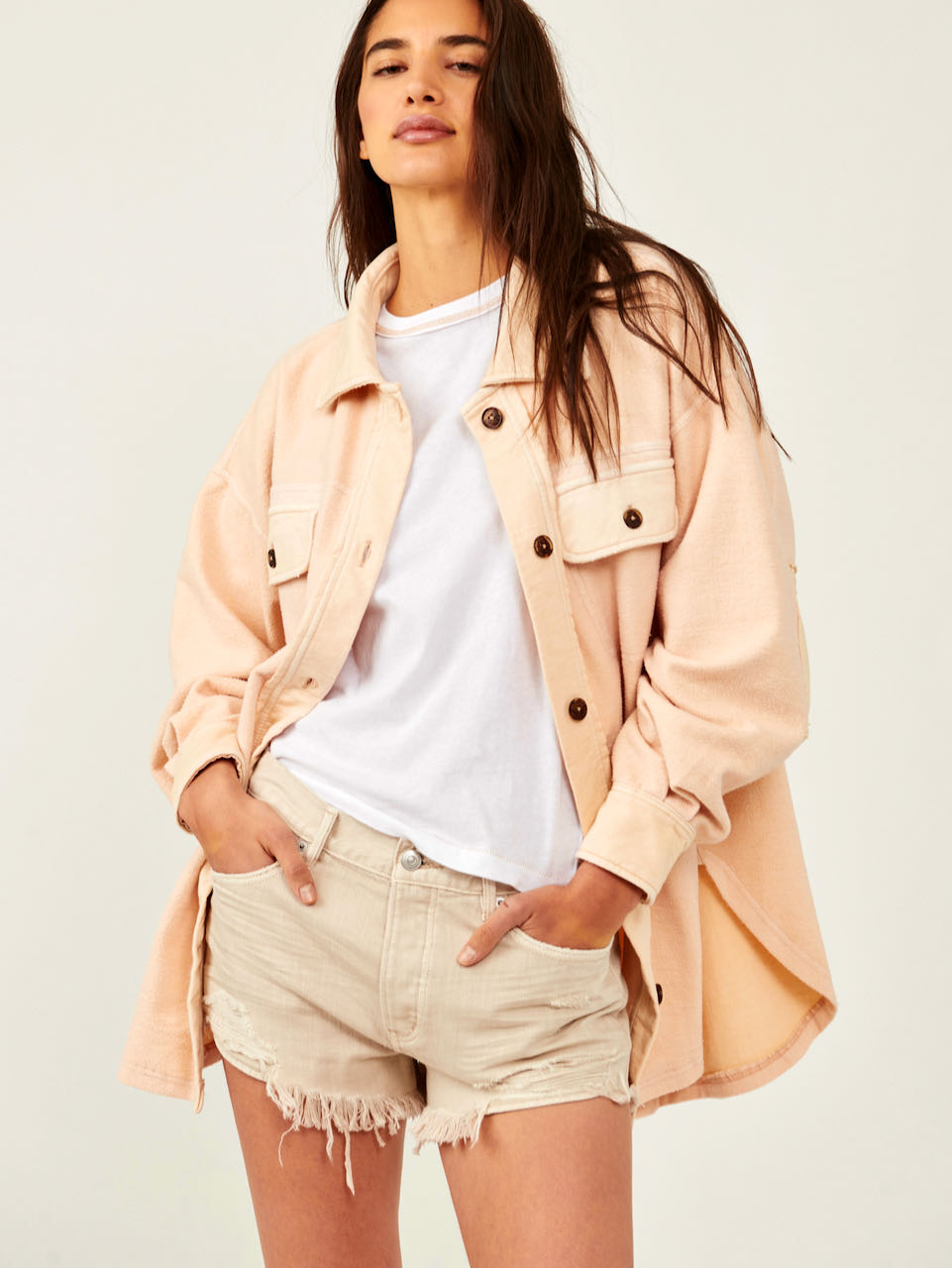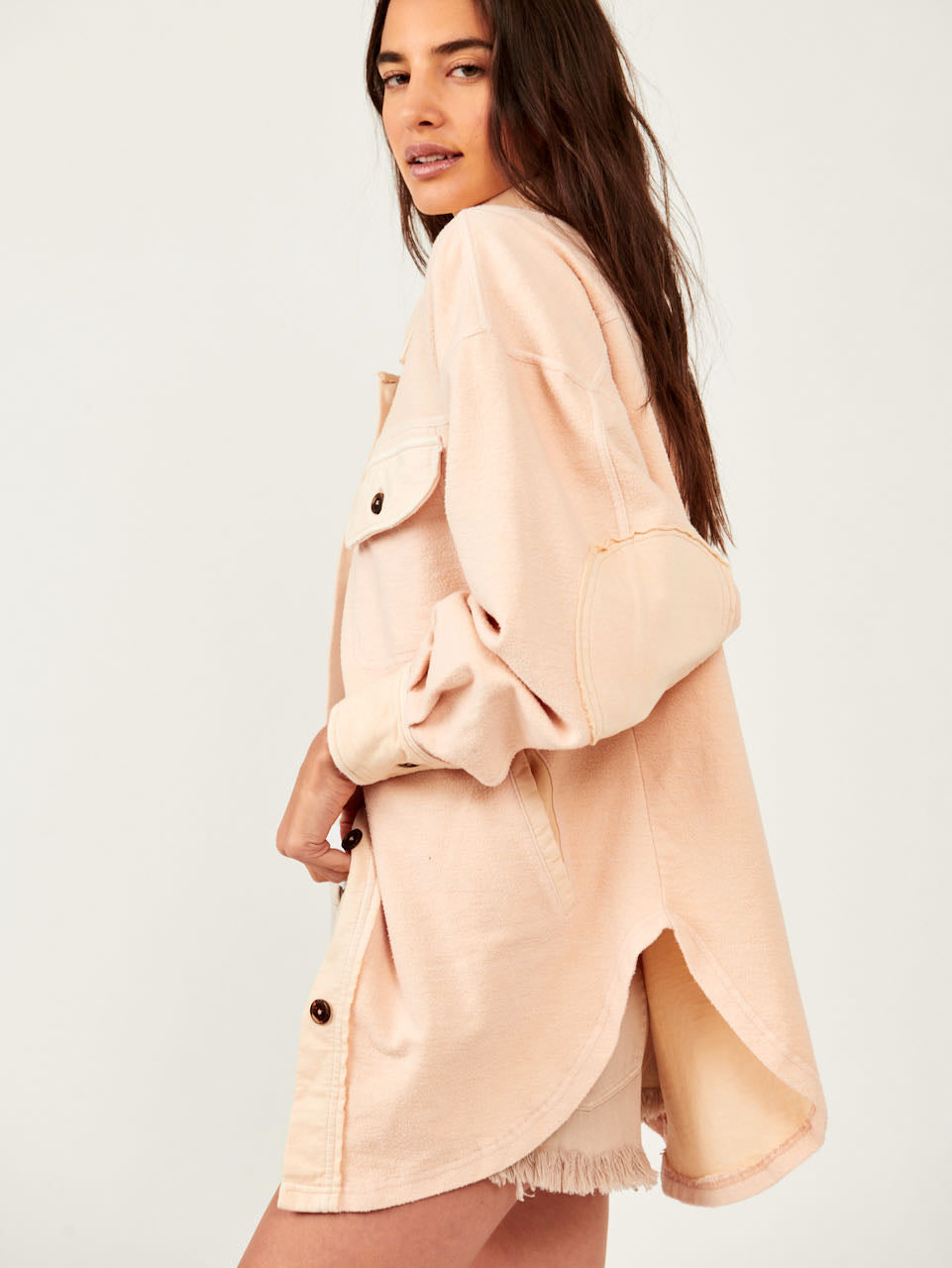Details: The perfect finishing touch no matter the look featured in a printed, shirt-jacket inspired silhouette and slightly oversized, boxy fit for added shape.