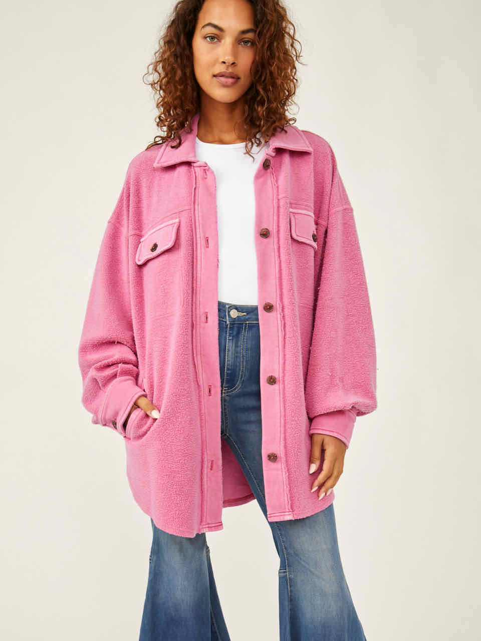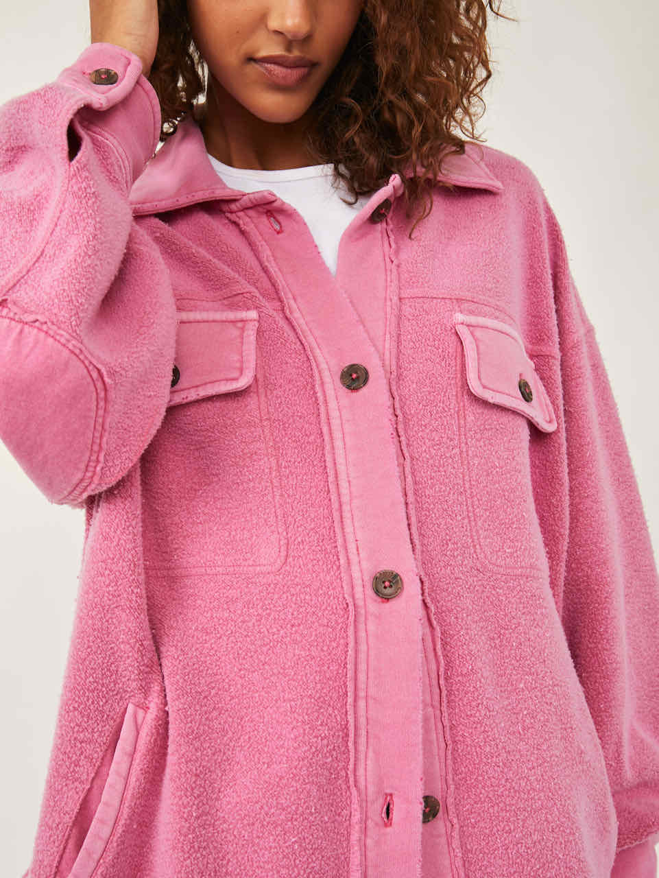 Details: The perfect finishing touch no matter the look featured in a printed, shirt-jacket inspired silhouette and slightly oversized, boxy fit for added shape.