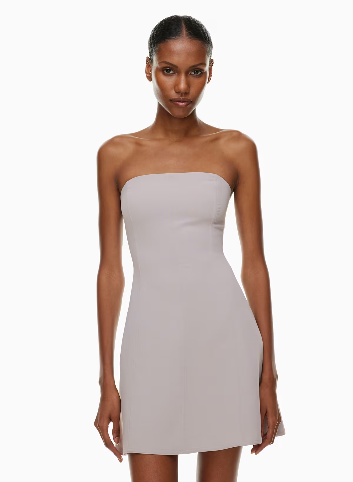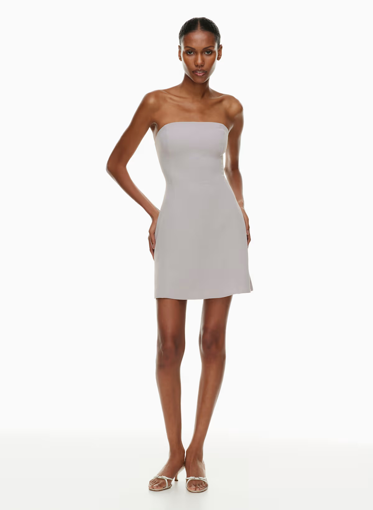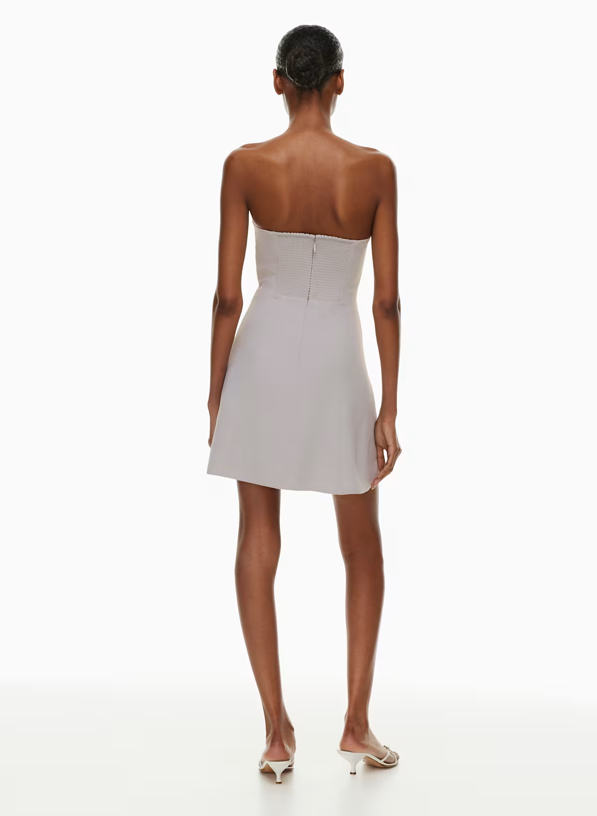 Details: This is a strapless fit-and-flare mini dress with a smocked back and princess seams for shaping. It’s made with Crepette — our one-of-a-kind Japanese crepe fabric beloved for its subtle texture, breezy drape and the fact that it basically never wrinkles.