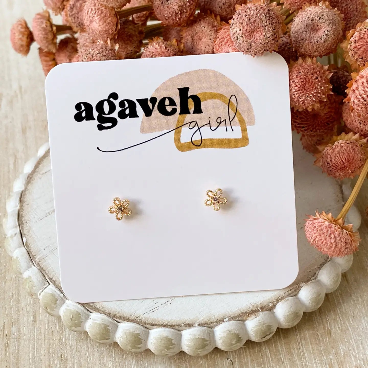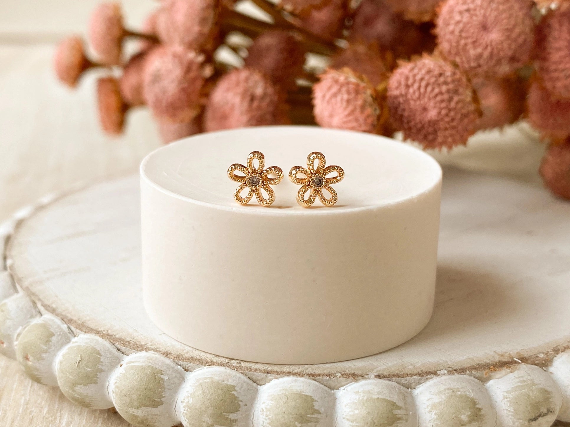 Tiny flower studs with a cubic zirconia in the center. These studs are so easy to pair with any outfit. You could add these in almost any piercing and they would look amazing. Nickel free.