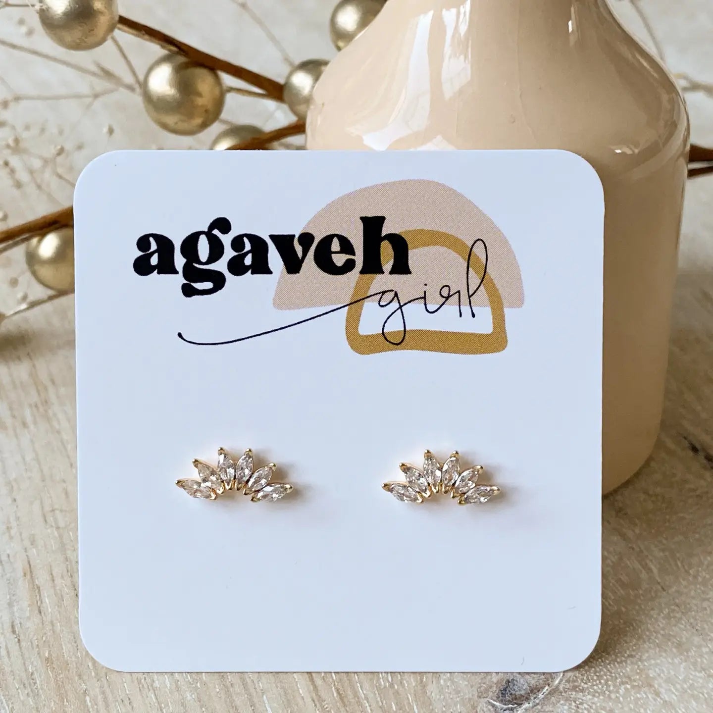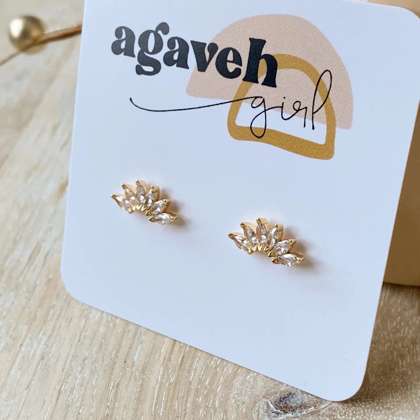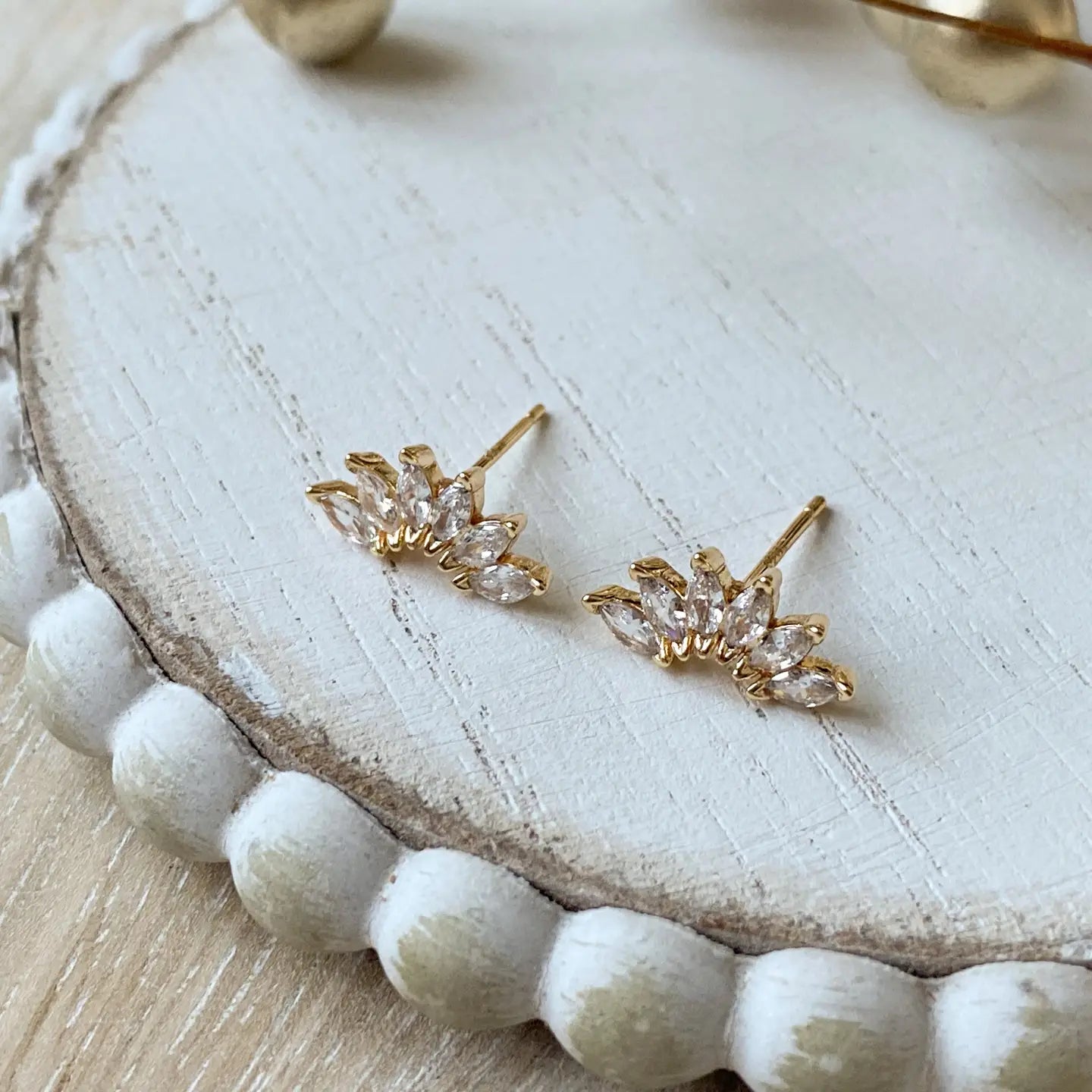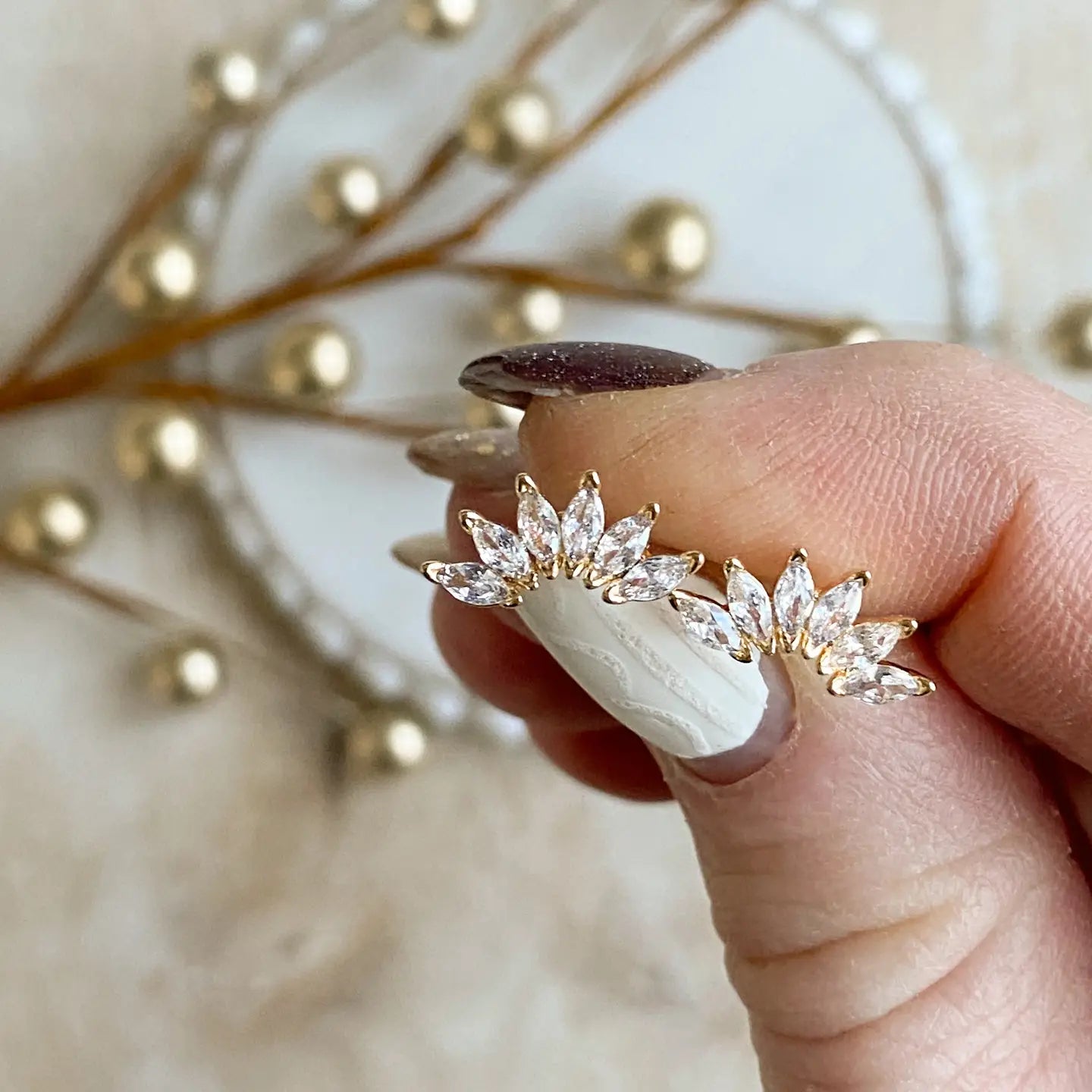 These cubic zirconia earrings are stunning! They are an arch shape with Marquez shaped stones. You could wear these sideways, rainbow shaped, or u shaped. Each way would give a totally different look. Nickel free and tarnish resistant.