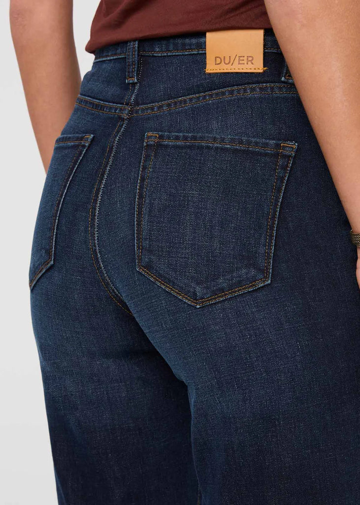 Details: In the midweight denim offering just the right amount of stretch for a broken-in feel, this retro-inspired silhouette is designed to contour the behind and highlight the waist, while the flare elongates the legs. Complete with bar tacks for the option to customize the length. The midweight performance denim has a minimal amount of stretch which means it will soften with wear and as you move through your day.
