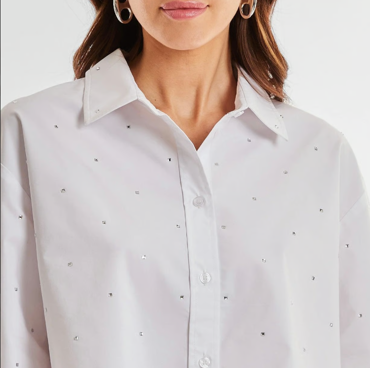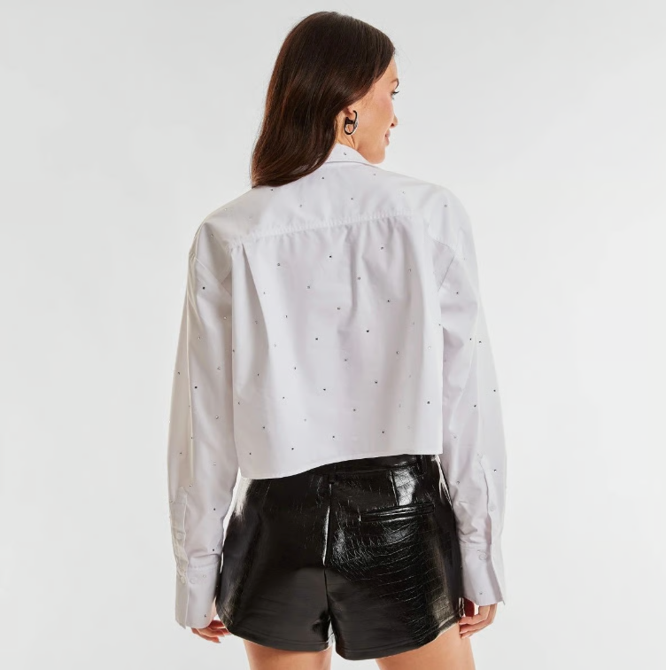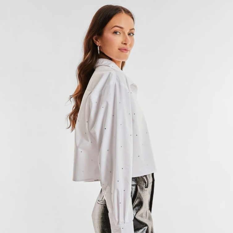 Details: Lightweight and effortlessly chic, perfect for layering, this classic button-down is updated with a boxy, cropped silhouette.