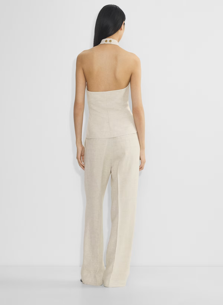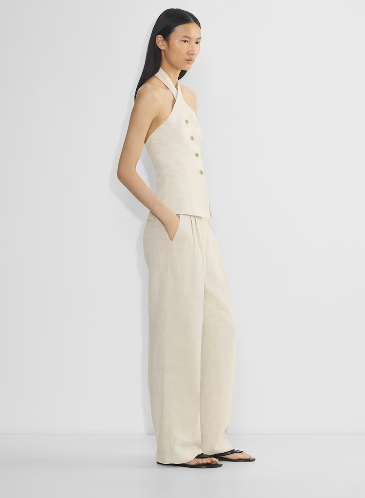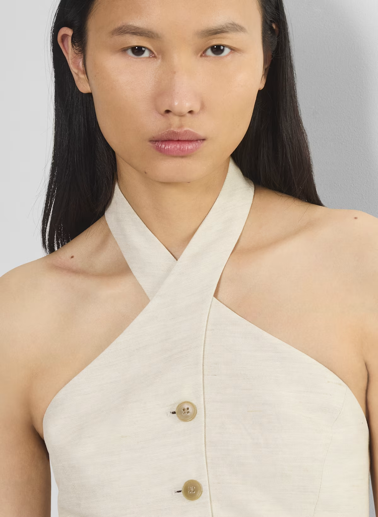 Details: This is a button-up vest with a halter neckline and slim fit. It's expertly tailored with CruiseLinen — soft, airy fabric that combines naturally textured linen with TENCEL Lyocell. For wherever the day takes you.