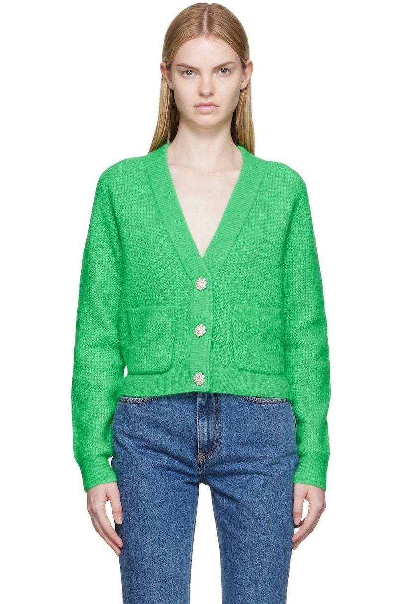 Stretch brushed rib knit alpaca wool and merino wool-blend cardigan