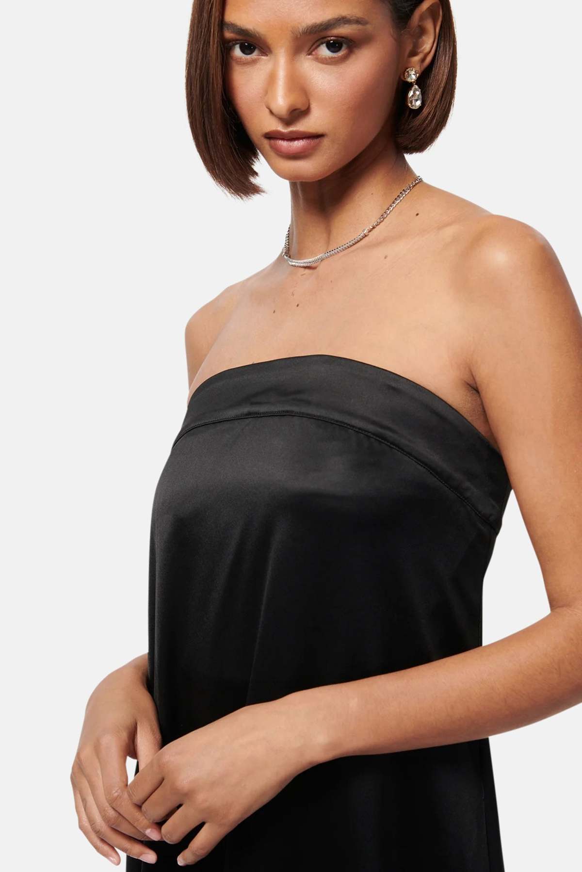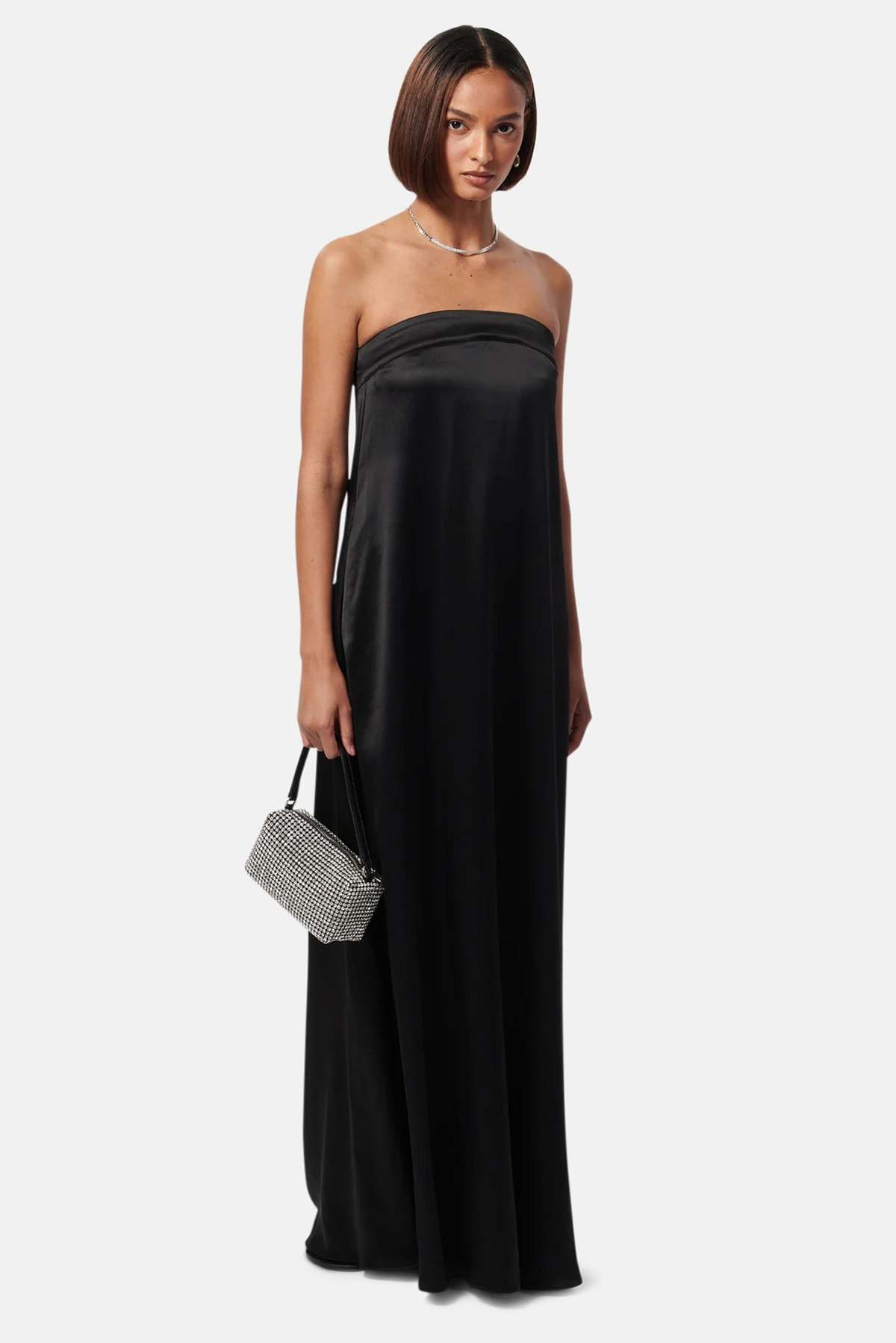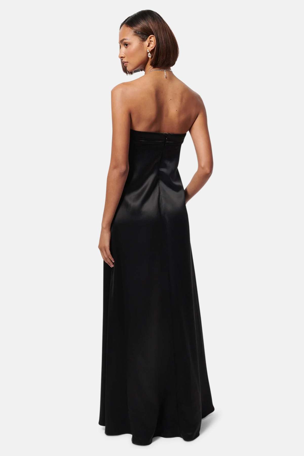 Details: This strapless gown has an inner corset construction and silicone tape at inside neckline for stability and support. Designed with a center back invisible zipper.