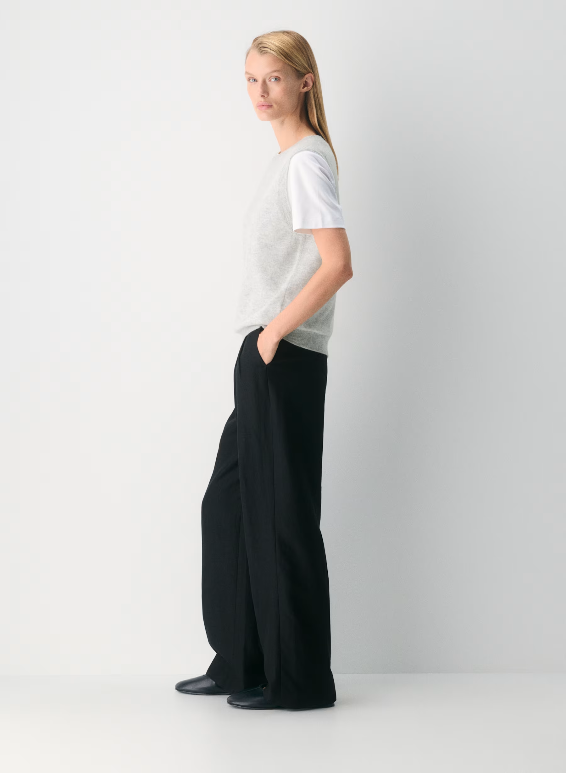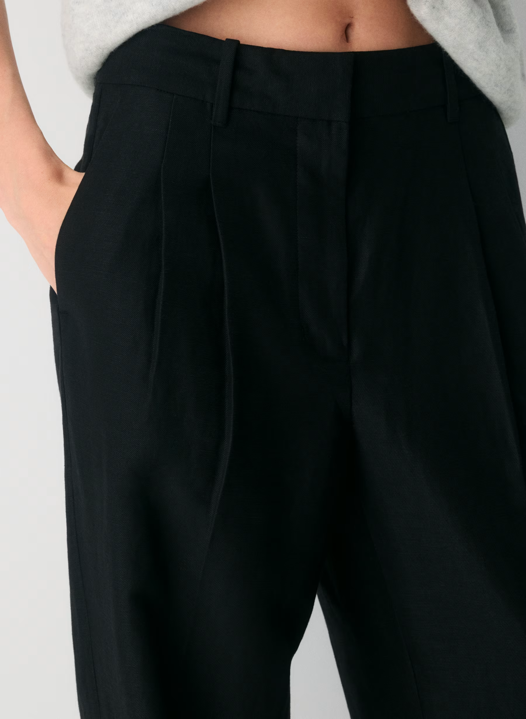Details: The original goes-with-everything trouser, these are tailored-yet-relaxed high-rise pants with front knife pleats, an easy drape and a long, wide leg.